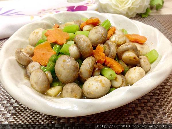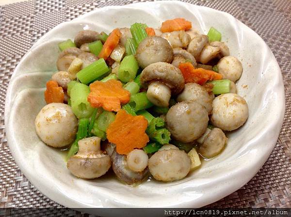 作法:蒜末爆香,炒熟蘑菇
